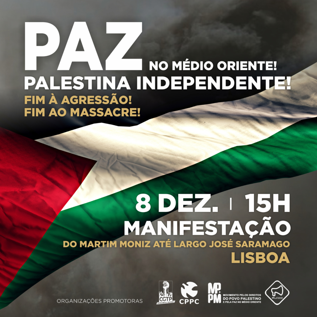 MANIFESTAÇÃO «Paz no Médio Oriente. Palestina Independente!» – 8 de Dezembro | 15H | Martim Moniz – Largo José Saramago